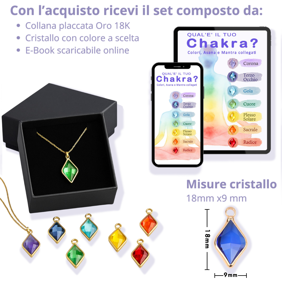 Ogni cristallo YLABY è ispirato ai 7 Chakra. Con la collana puoi scaricare in omaggio la Guida ai Chakra, un percorso per il tuo equilibrio interiore. Un valore aggiunto per trasformare il tuo gioiello in uno strumento di benessere.